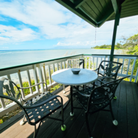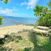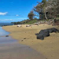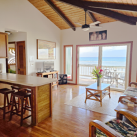 Pu’unana house sits on a low bluff and beach access is provided by a single flight of steps.